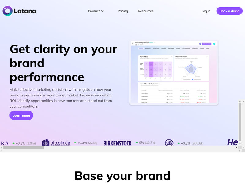 - Marketing-Entscheidungsunterstützung: Latana hilft Marken, bessere Marketingentscheidungen zu treffen, indem es weltklasse, skalierbare Einblicke liefert. Dies wird erreicht, indem Markenverfolgung betrieben wird, um zu verstehen, wie eine Marke in ihrem Zielmarkt performt.